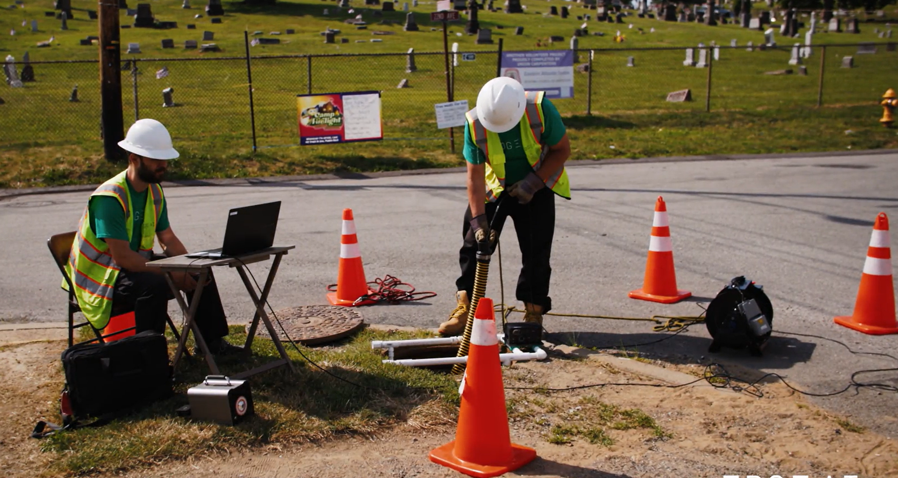 , weighing about 40 lbs, so it can be carried into tight easements or remote areas where larger systems can’t reach.